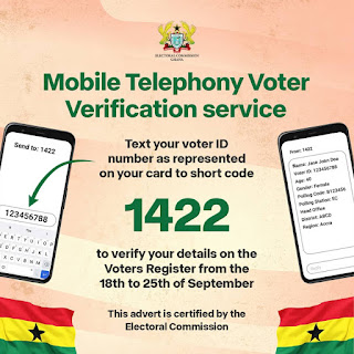 REMEMBER : Voters are to send their ID number to the code 1422 to access their details. Cost of sms is 30Gp
